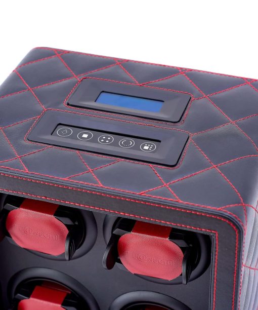 Dekket med vegansk PU-skinn, eller trelakkert, klassisk eller sporty, er dette en designvinner fra Leanschi. En LED-kontrollert PAD plassert på toppen av enheten muliggjør raske og enkle innstillinger. Du trenger ikke å laste ned noen APP eller programvare, ingen behov for oppdateringer: du kobler den til og winderen er klar til å oppbevare og ta vare på klokkene dine.